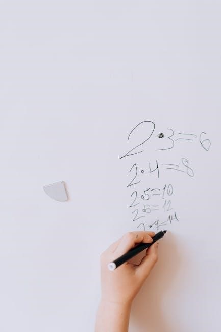 Simple shape identification and pattern recognition are also valuable additions. MathWorksheets.com offers resources suitable for this age group‚ emphasizing a playful approach to learning; The goal is to build confidence and a positive attitude towards math‚ establishing a strong base for future concepts. Keep exercises short and focused‚ reinforcing basic number sense.