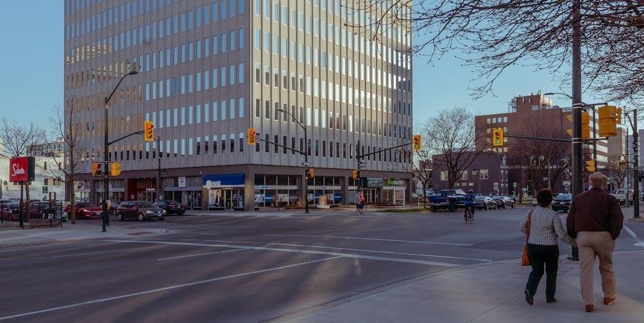 Book 7 dedicates significant attention to pedestrian signal operation and ensuring public compliance. It details the standard pedestrian signal indications – walking person (steady)‚ flashing don’t walk (flashing hand)‚ and steady don’t walk – and their corresponding meanings. The manual specifies minimum pedestrian crossing times‚ calculated based on pedestrian walking speed (typically 1.2 meters per second) and the width of the roadway.