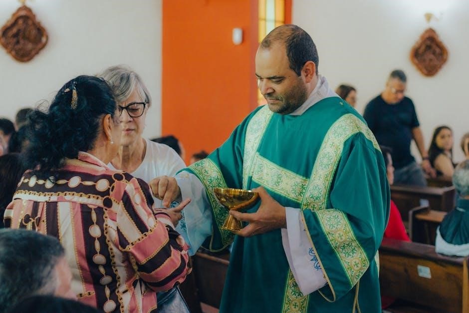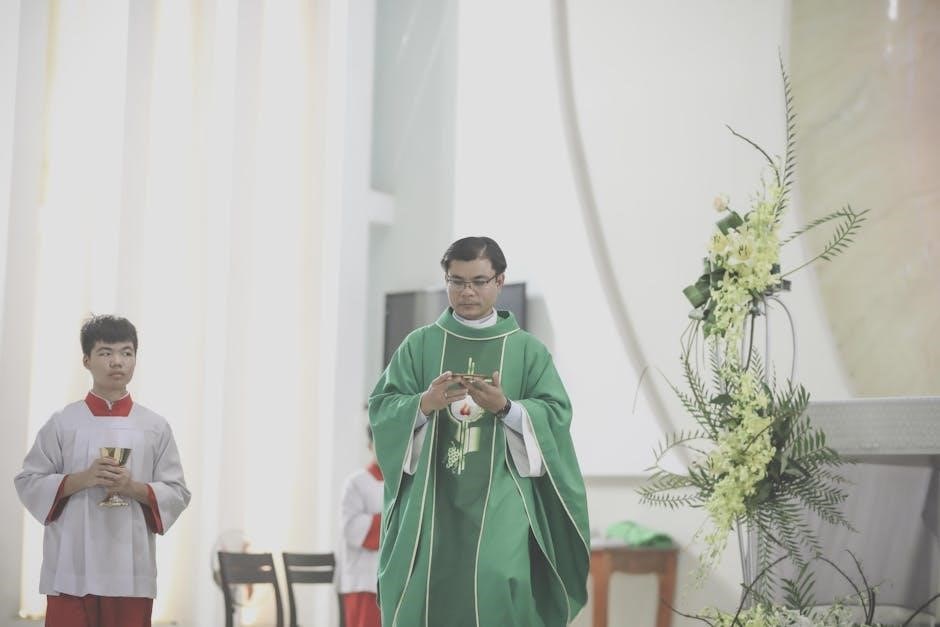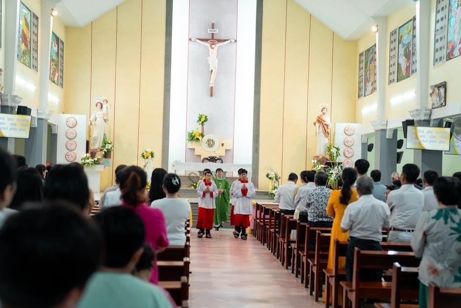 Music selections, including the entrance, communion, and recessional hymns, should complement the readings and create a reverent atmosphere. The PDF guide often lists approved hymns and provides guidance on appropriate musical choices. Collaboration with the parish music director is highly recommended to ensure selections align with liturgical norms and enhance the spiritual experience for all attendees.